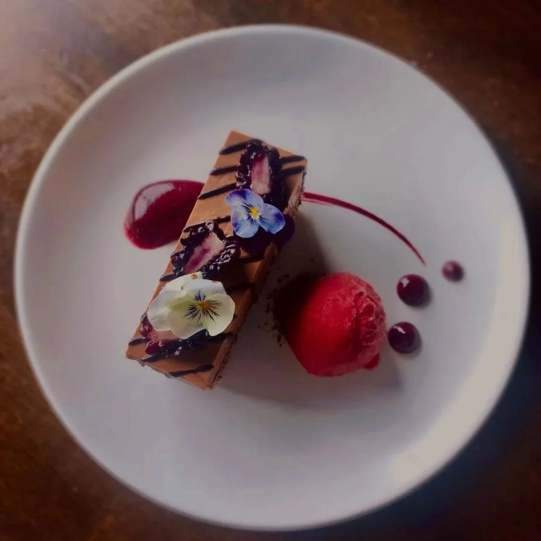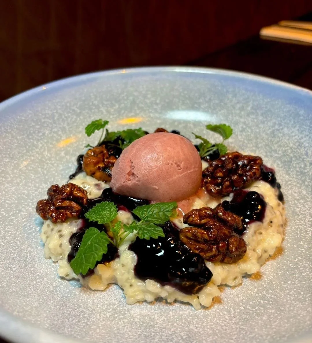 Caramelised walnut, blueberry compote, mixed berry sorbet