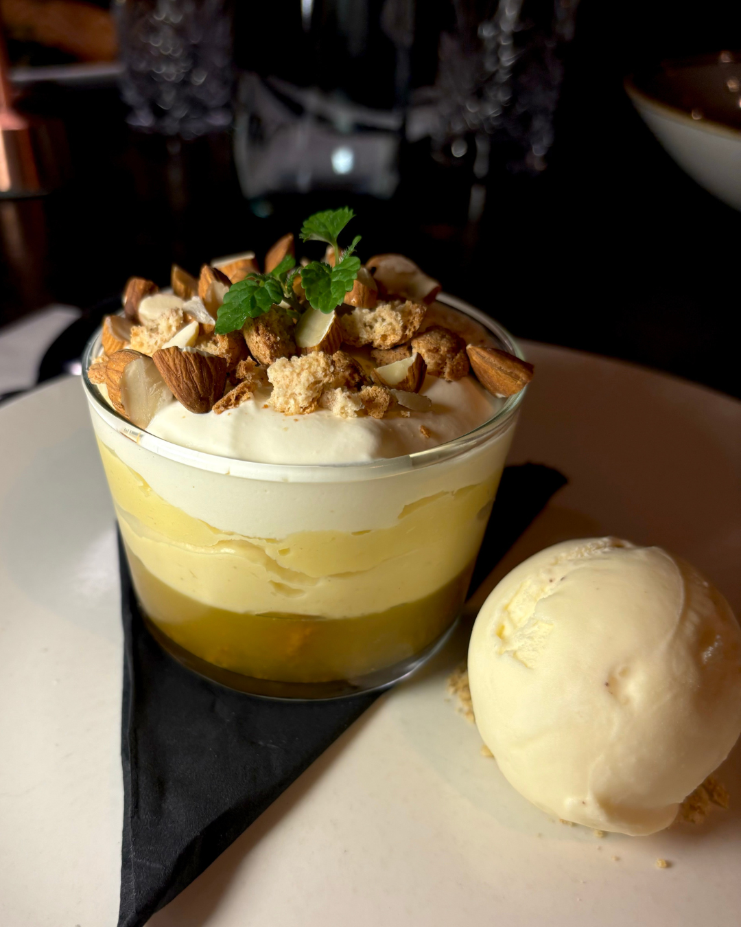 Muscovado caramel sauce, rum spiked raisins, vanilla ice cream